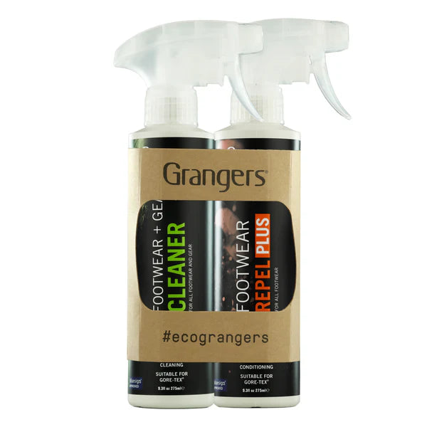 This spray-on footwear bundle caters for all your outdoor footwear needs. Footwear + Gear Cleaner removes ingrained dirt and odours whilst the Footwear Repel Plus offers durable repellency to protect against rain and stains. Footwear Repel Plus also offers added conditioning for leather, suede and nubuck footwear. This eco bundle is suitable for all footwear uppers making taking care of footwear easy.