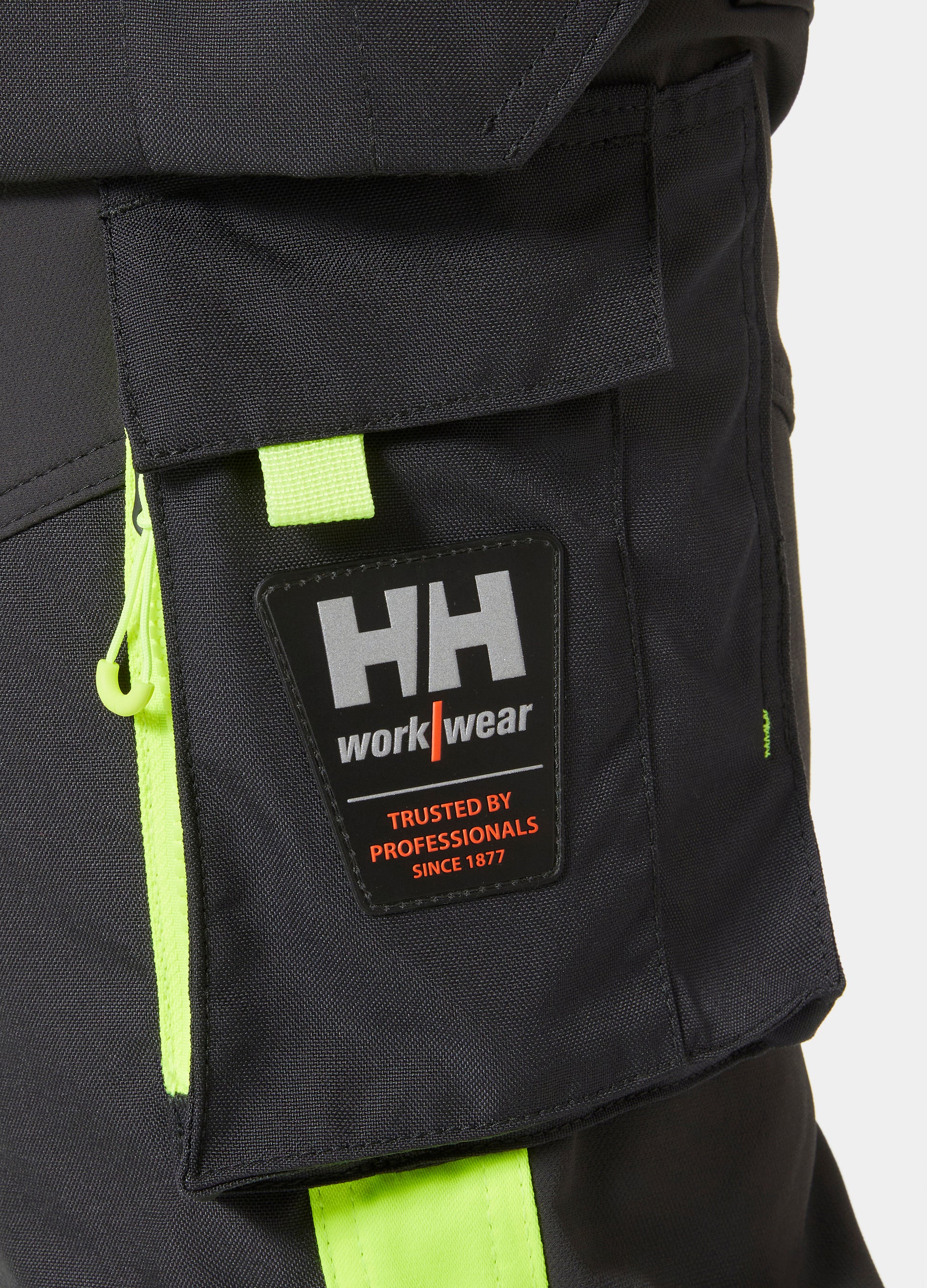 The durable 4-way stretch fabric combined with our hi vis polyester/cotton mix provides excellent flexibility, style, and safety when you need to be seen. Modern fit, removable tool pockets and Cordura® reinforced knee pockets makes this pant the all-in-one choice for work in all conditions.