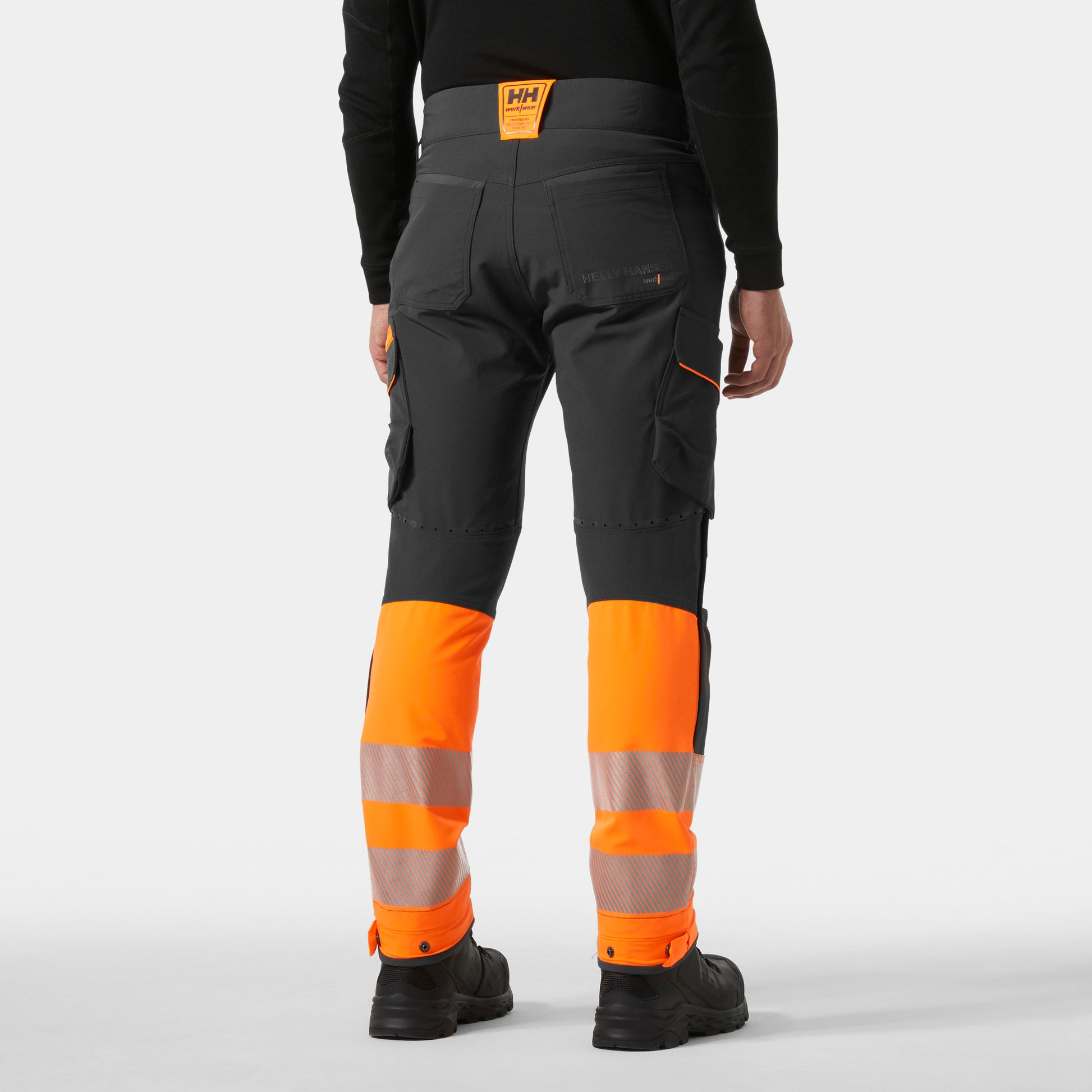 Work in comfort indoors and through the summer months with Helly Hansen Workwear ICU BRZ SERVICE PANT CLASS 1. These work cargo pants are part of a new workwear focus on comfort and mobility. Stay cool with side-seam ventilation and laser-cut ventilation holes in the back. Articulated knees, crotch gusset, and four-way stretch fabric all help your workwear move with you. Stability elements include a broad back belt loop and snap-adjustable leg cuffs. High-quality details like YKK® zippers, a fastener closure on the thigh pocket, and coated metal buttons provide extra durability. Workwear additions include an integrated mobile pocket, a ruler slot, and a card loop for ID. Leg length can be increased by five cm for a better fit. With stretch Cordura® knee reinforcement on the knee and hem, the ICU BRZ is a durable pair of pants that will last for years to come.