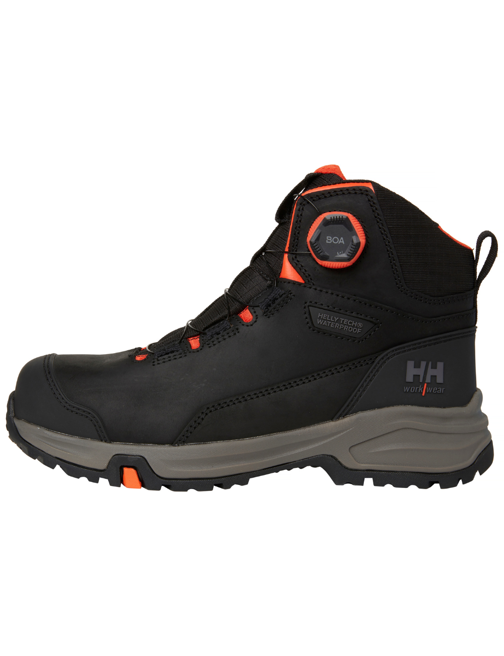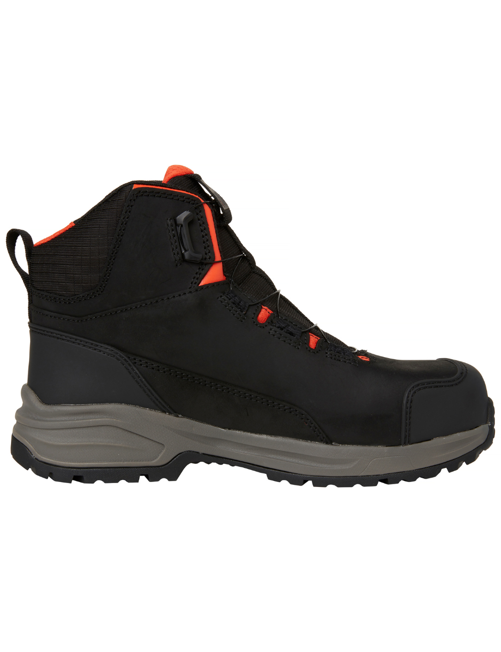 Manchester has no gimmicks, just great safety footwear that does what you demand it to. These protective, metal free safety shoes come with composite safety toe and a non-metallic nail penetration sole. Designed with Helly Tech® Waterproof Membrane and Waterprood Leather upper, the Manchester LTR Mid BOA S7S HT will keep you dry throughout the work day. Its open Cell PU Footbed -lightweight, breathable and provides long lasting cushioning and moisture management. Made of LWG leather and equipped with the BOA® Fit System – L+1, the Manchester LTR will provide an adjusted fit witout compromising on looks.